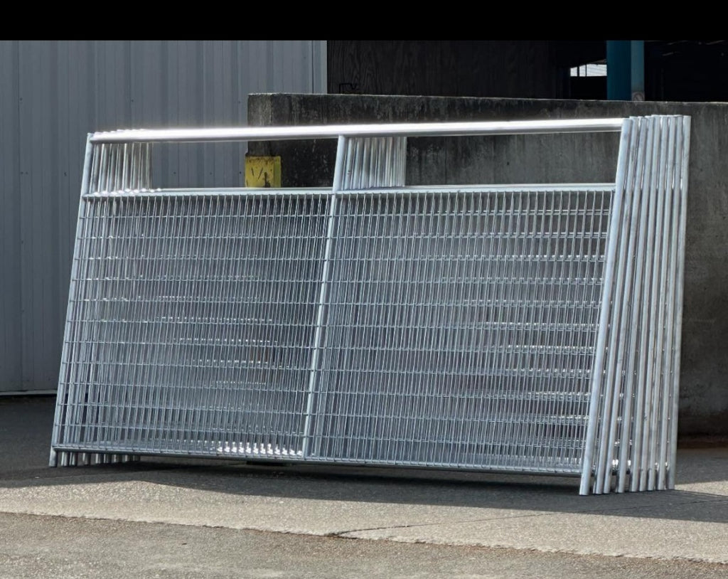 12' w x 5'5" h, 1 5/8" 15 ga. Galvanized steel panels with screen.  Approx 120 lbs.