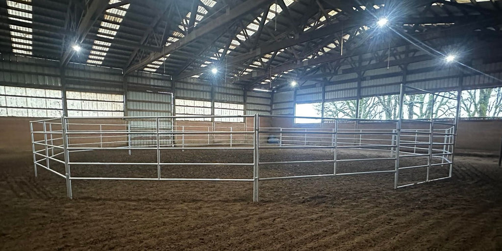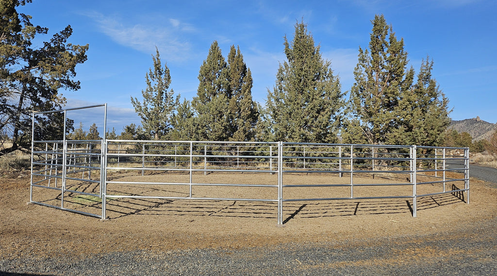 Heavy duty 12' galvanized panels, bow gates are a 12' panel with a 6' bow gate built in. Cross bar is high enough to ride under. These are the real deal, not the lightweight panels you can buy in town, and they'll hold their value.